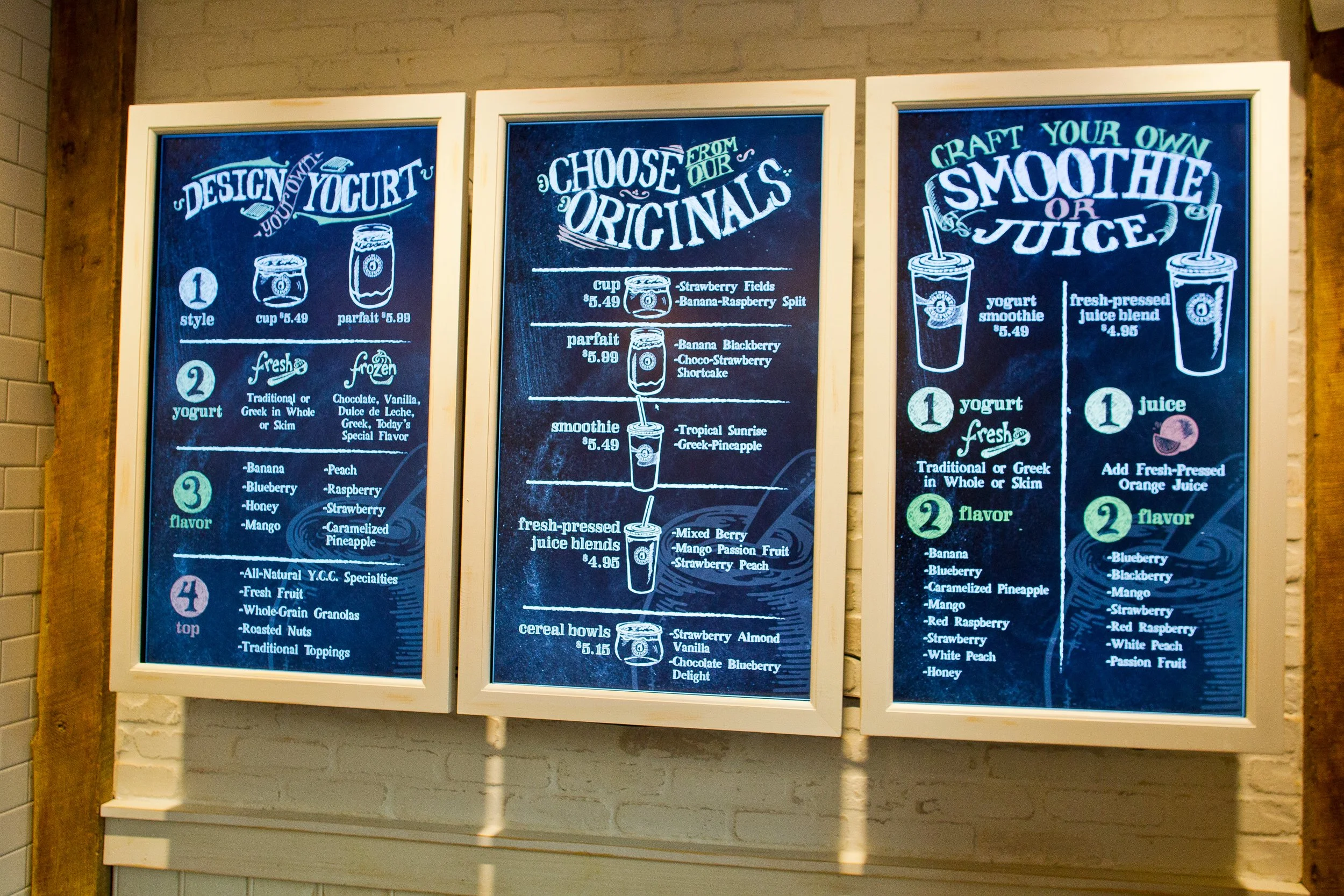 When a major retail yogurt brand wants to expand outside of their personality and develop an incognito retail space, we rolled up our sleeves and got to work. An authentic-feeling brand identity got us going, inspiring every consumer touch point. Hand-drawn illustrations abounded including being the foundation for digital menu boards and interactive displays. Every item and instance was thoughtful from materials to the online ordering experience. This store is one-of-a-kind.